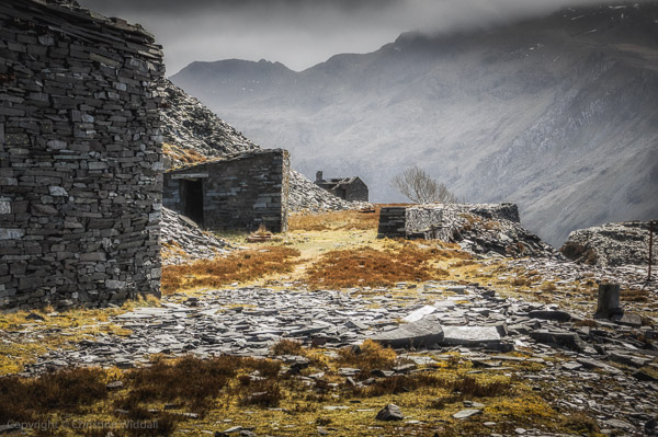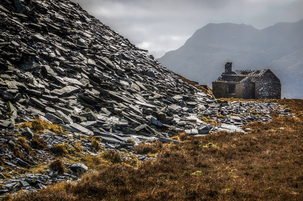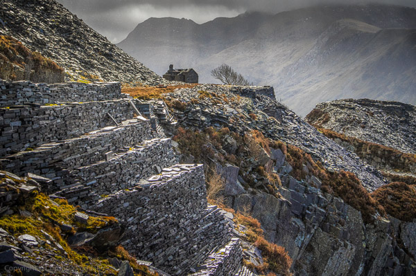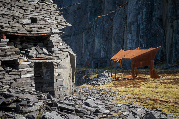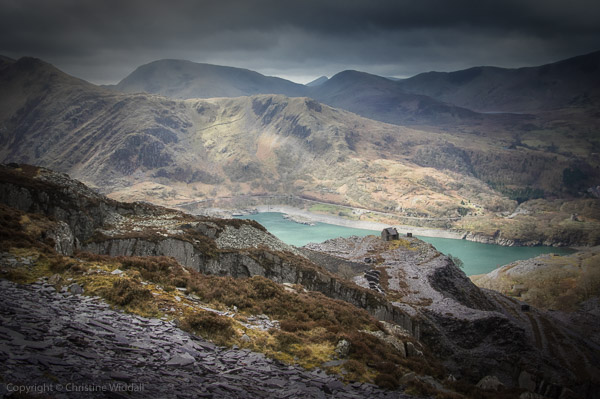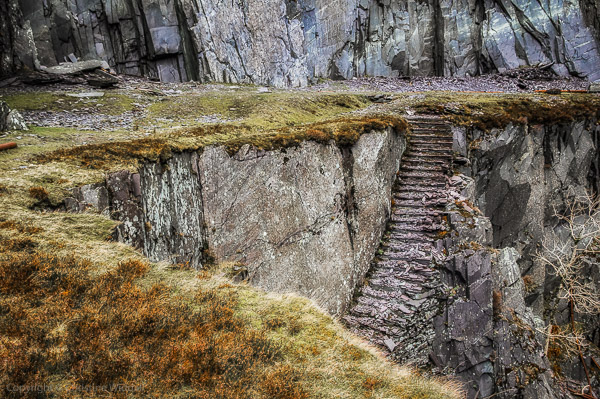 I climbed up into the quarry with two photographers from the area, Sian and Albert. It’s not too difficult a climb though it is dangerous in places and the slates slide over each other on the steps down, so it is necessary to take a little care on the slopes.