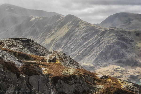 At first the light looked rather unpromising but we did get some lovely bright spells as we reached the higher levels. i tried to use the light, by photographing into it so as to show the strong contrasts on the slate tips. I have posted a few shots from the morning below.