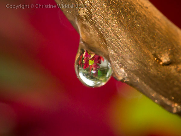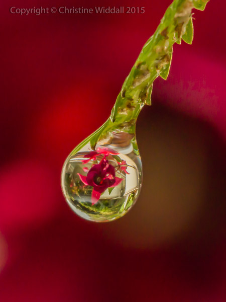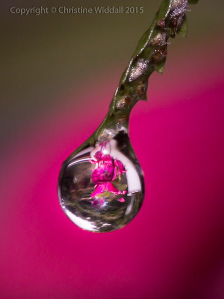 Whilst preparing a talk on macro photography to deliver at one of my photographic clubs, I became fascinated by the tiny world of images refracted through water droplets. There are some incredibly beautiful examples to be seen on the web and my offerings here are a first attempt. As with everything in life, we become better by practice and I have already discovered some of the things that I have done wrong so far, so with a little patience, hopefully my next attempts will be better.