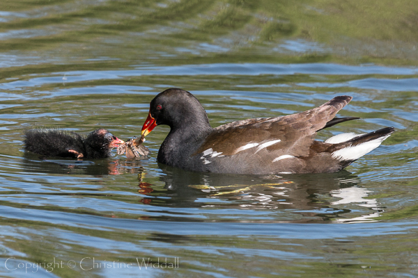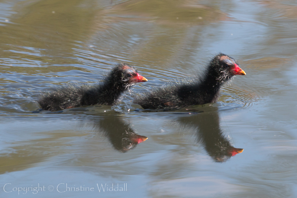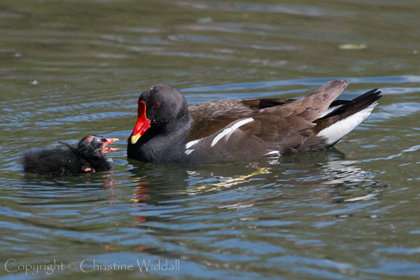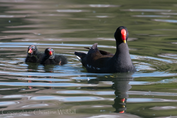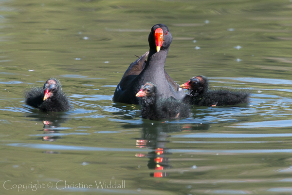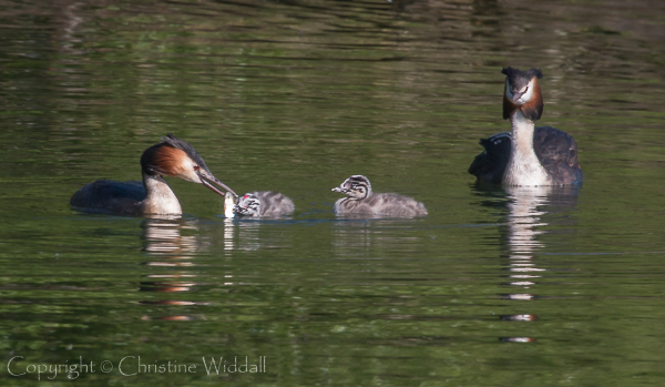 Great Crested Grebe and Moorhen families