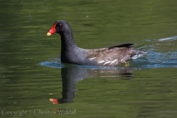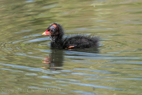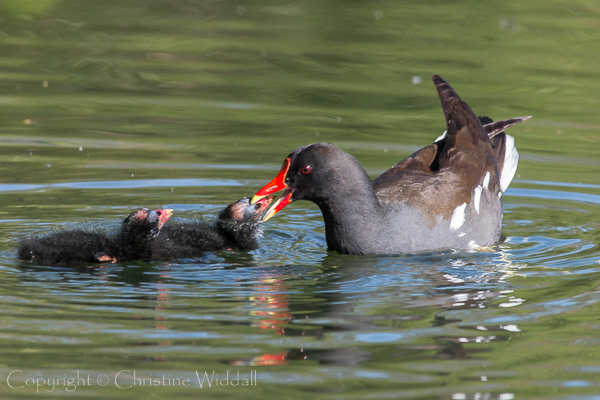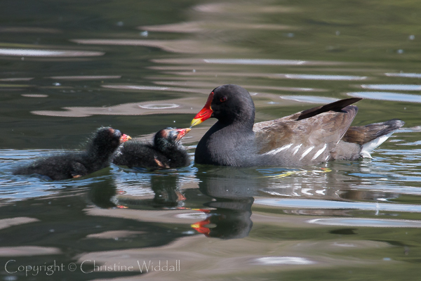 Closer in, near the edge of the lake were two families of moorhens darting in and out of the reeds and it was possible, from time to time, to see the chicks being fed.